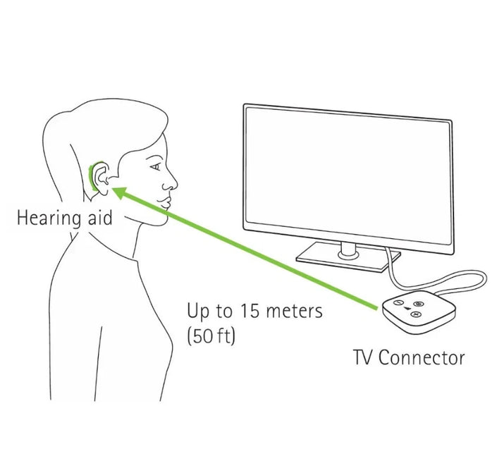 Perfect for streaming your favorite TV shows, movies, and music, the TV Connector delivers superior digital audio directly to both hearing aids, ensuring clarity, comfort, and convenience.